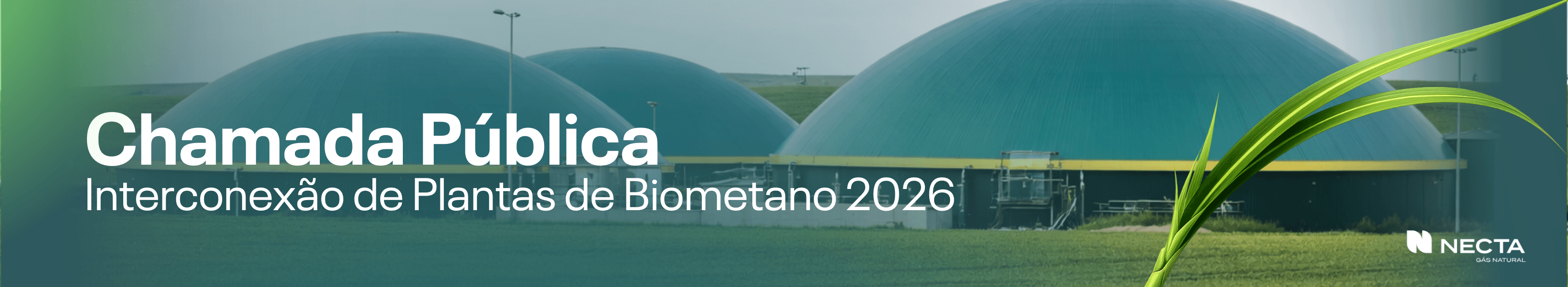 A Necta Gás Natural anuncia a abertura da Chamada Pública para recebimento de propostas de interconexão de plantas produtoras de Biometano à sua rede de distribuição de gás canalizado.